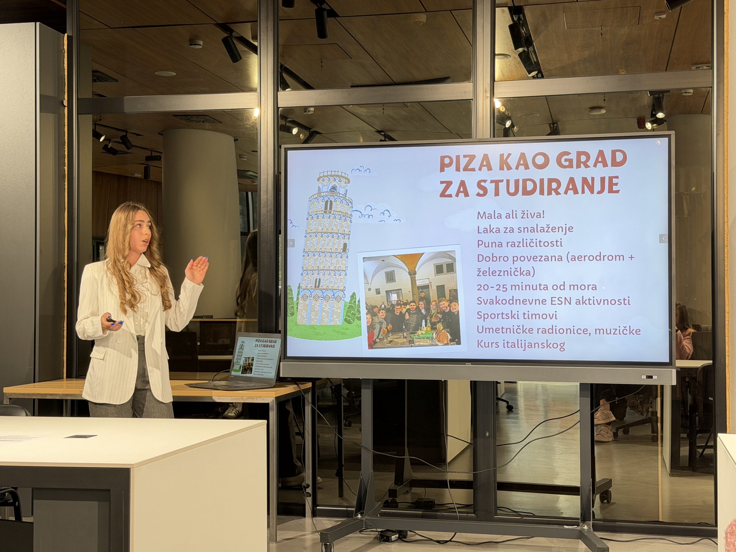 In the second part of the program, a workshop titled “How to Apply for an Erasmus+ Exchange?” was held by Ljubica Dimitrijević and Marina Jovanović from the University of Belgrade. They spoke about the MOBION platform and the application procedure for exchange programs, preparation of documentation, obtaining scholarships, and related topics. Students showed great interest in this part of the program, asking numerous questions.