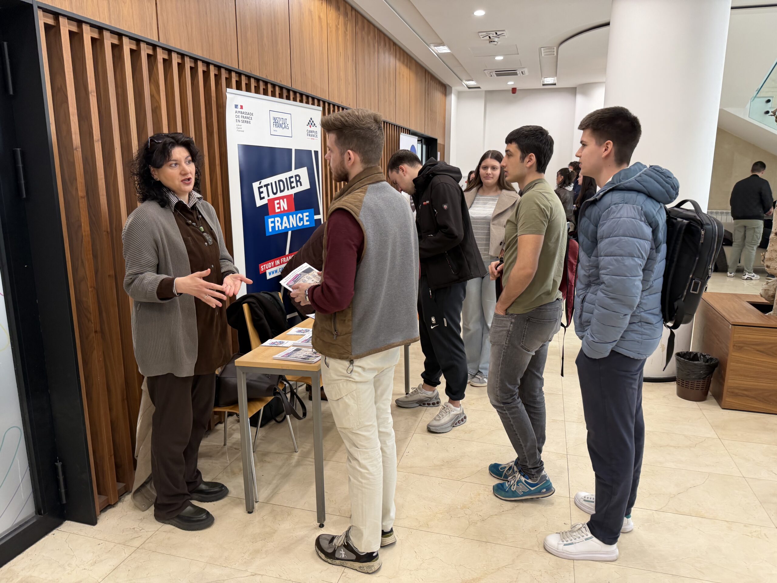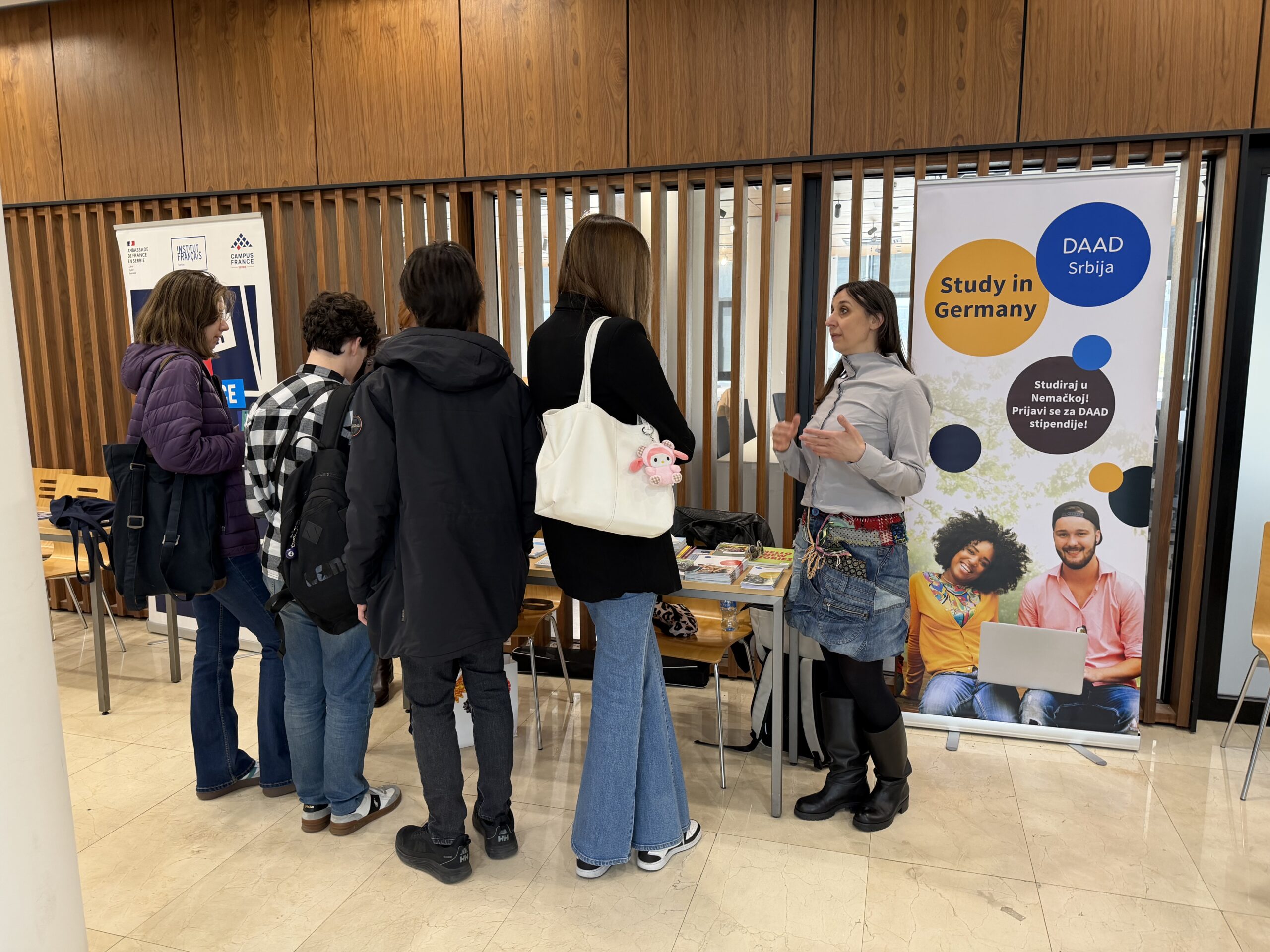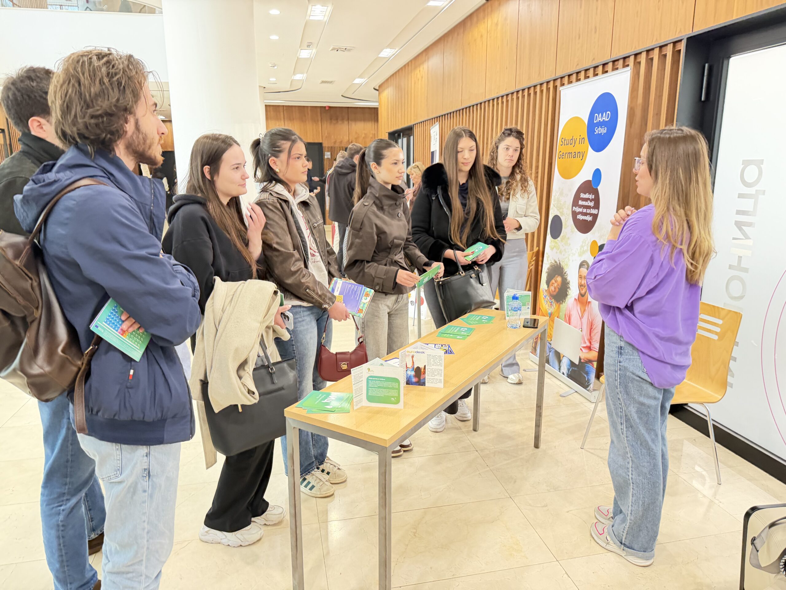 Throughout the entire event, informational stands were set up in the Faculty Hall by the Tempus Foundation, the French Institute in Serbia, and the German Academic Exchange Service (DAAD), which attracted significant interest from students.