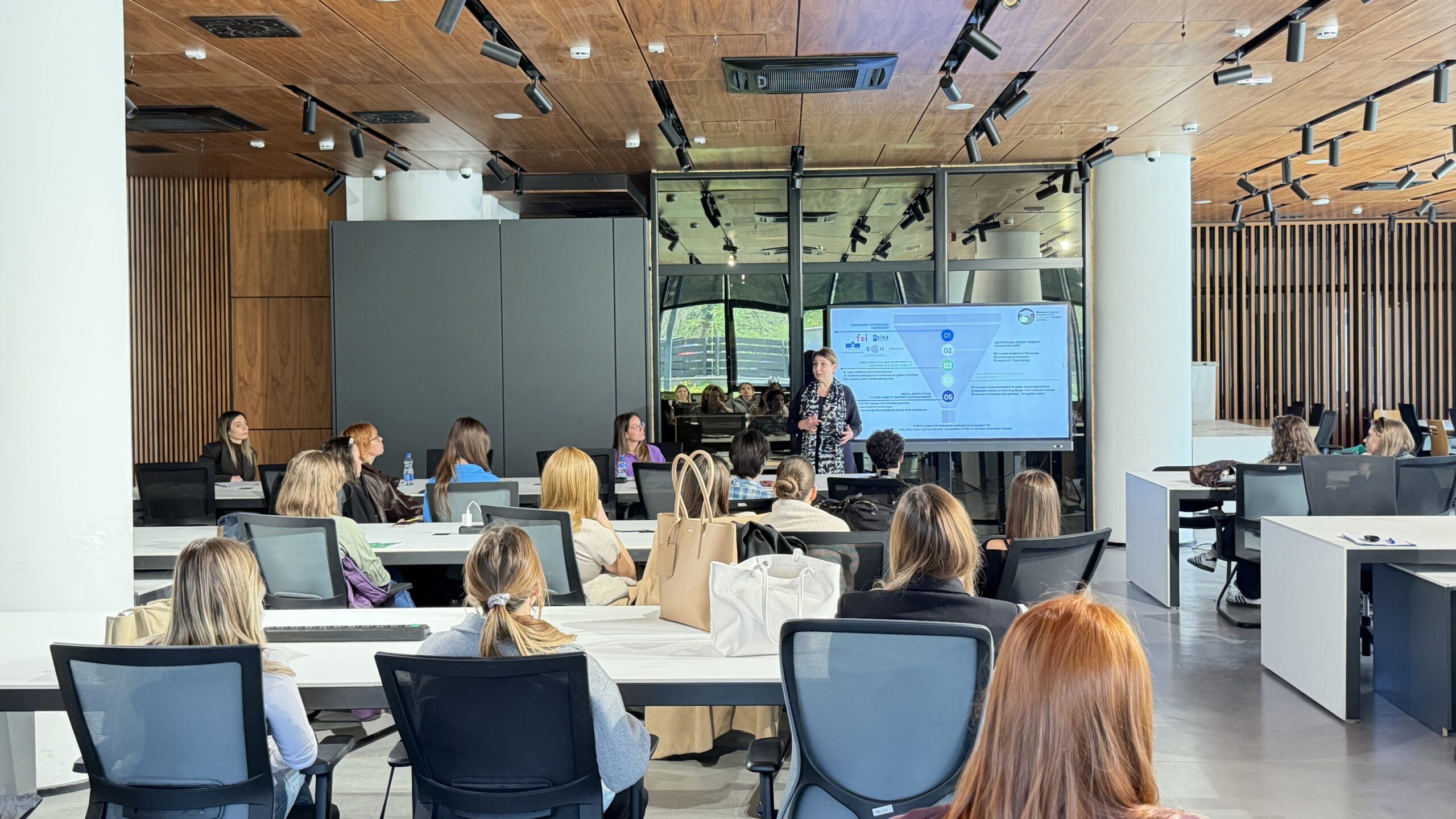 At the beginning of the program, professor Jednak also presented to students the activities carried out by the Faculty within the Erasmus+ project SuMoS – “Strengthening the ecosystem for sustainable student mobility.” Within this project, FOS, together with four partner universities, is working on creating better opportunities for student mobility, analyzing the current state of mobility systems and providing recommendations for improvement, developing an online tool for measuring environmental footprint to make mobility greener and more sustainable, creating a methodology for course comparison and recognition among universities, and developing a digital platform to support student mobility. This platform will facilitate access to information, application processes, and the implementation of mobility for both students and staff.