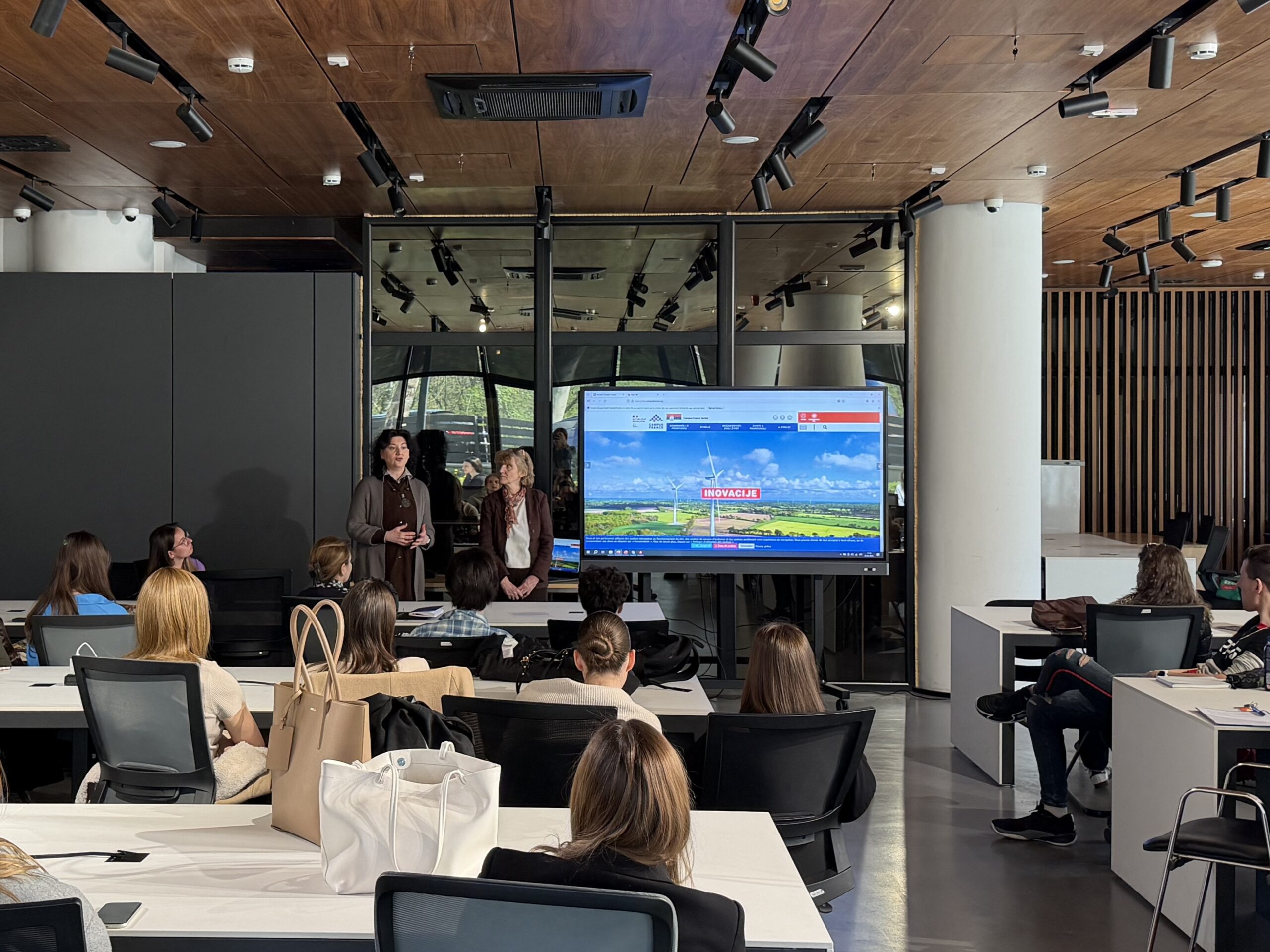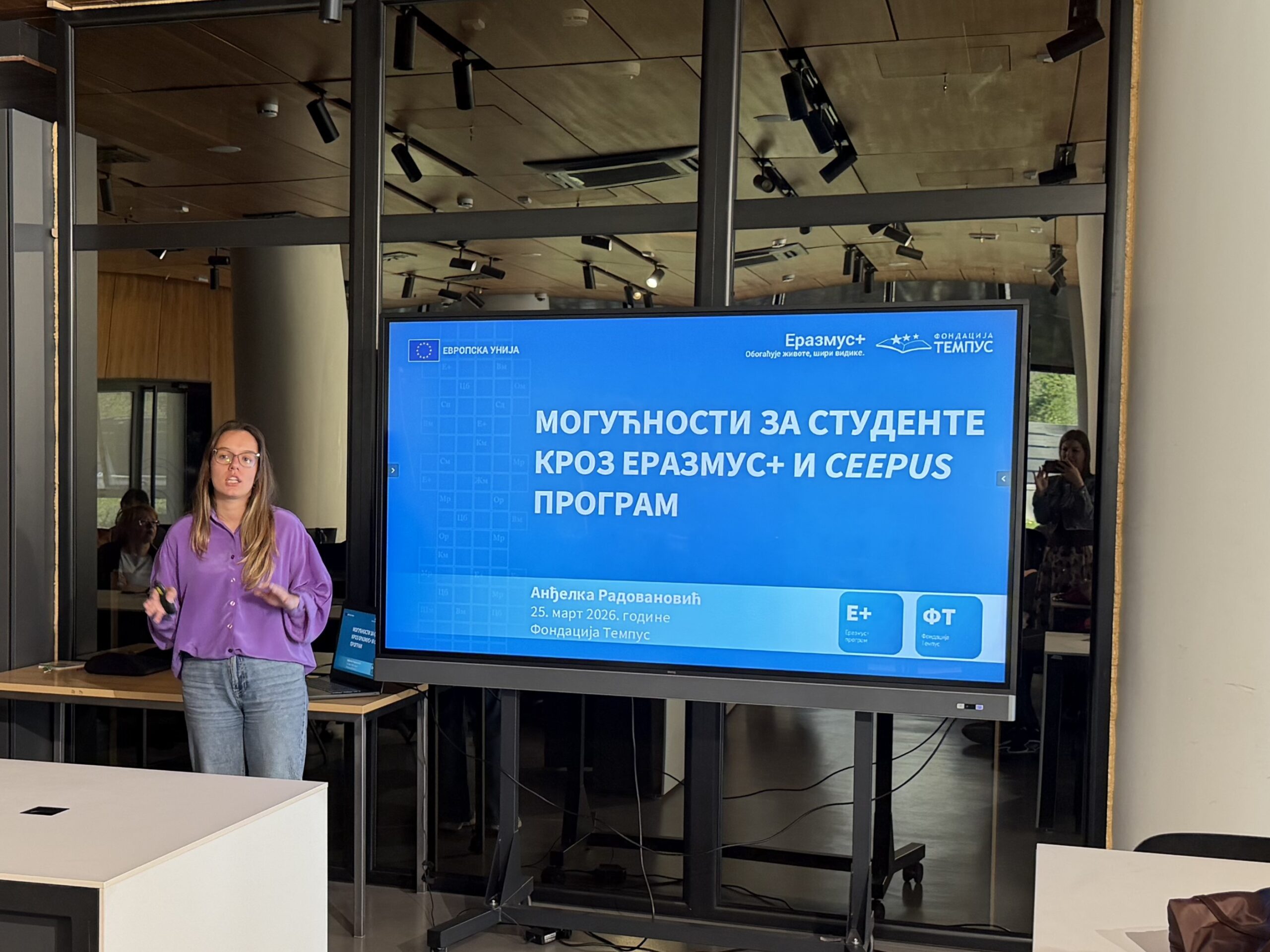The event consisted of several segments. In the first part, presentations were delivered by representatives of institutions, foundations, cultural centers, and international organizations, who introduced the opportunities available to students. On behalf of the Tempus Foundation, Anđelka Radovanović presented the Erasmus+, CEEPUS, and Erasmus Mundus Joint Master Degrees programs, as well as the Europass platform and its tools. Representatives of the French Institute in Serbia, Ms. Sandra Elezović and Ms. Vesna Adamović, presented scholarships offered by the Government of the French Republic for studying in France. On behalf of the German Academic Exchange Service (DAAD), Ms. Danijela Esterman Pavlica and Ms. Daliborka Maldaner presented opportunities for continuing studies and professional development at German universities.