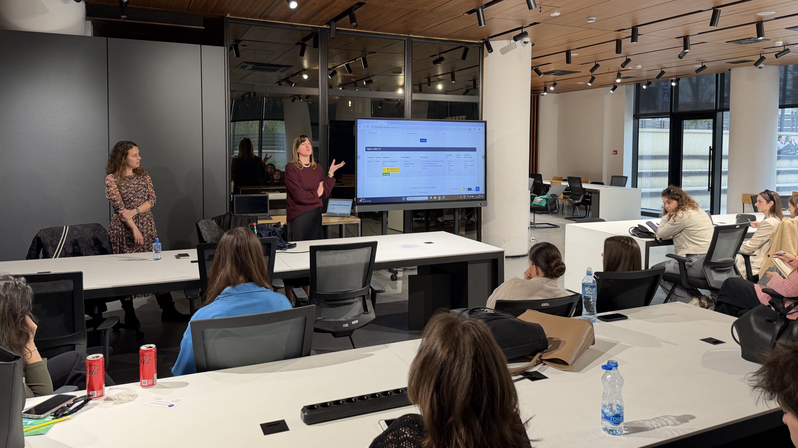 The event was opened by Prof. Dr. Sandra Jednak, Vice Dean for International Cooperation and Finance, who welcomed the attendees and expressed her gratitude to the representatives of institutions for their participation and response to the Faculty’s invitation. The Vice Dean also highlighted her satisfaction with the high level of student interest, encouraging them to take advantage of mobility opportunities during their studies and enrich their education with valuable international experience. The program was moderated by Bojana Ivanović Bovan and Nikolina Papić from the Faculty’s International Relations Office.